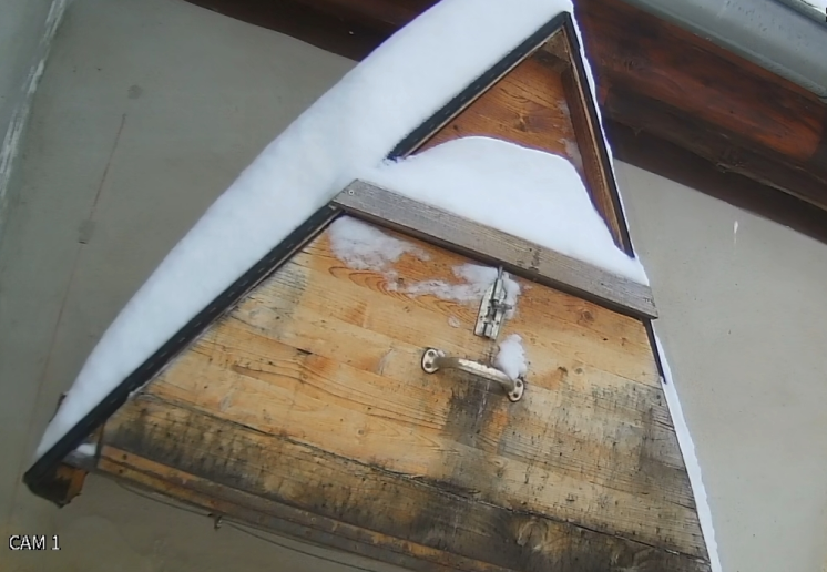 - Schnee vor dem Kasteneingang