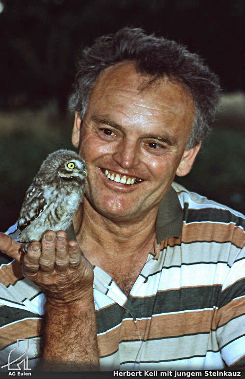 - Herbert Keil mit jungem Steinkauz